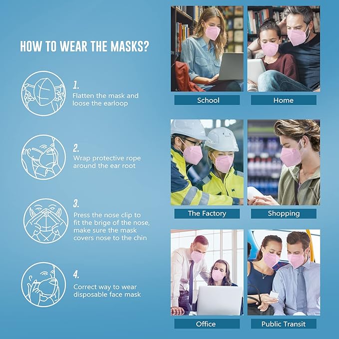 - Powerful Protective Barrier : Not easy to drop, no need to adjust it when you work. Softer elastic ear loop design of the KN95 face mask helps eliminate pressure on the ears for comfortable experience. Adjustable nose clip design can help the mask perfectly attach onto your face. The four sides join tightly to the face; Hence, the protective mask KN95 avoids unfiltered air directly entering into.