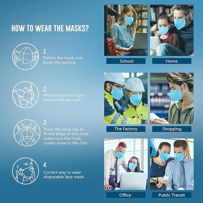 - Powerful Protective Barrier : Not easy to drop, no need to adjust it when you work. Softer elastic ear loop design of the KN95 face mask helps eliminate pressure on the ears for comfortable experience. Adjustable nose clip design can help the mask perfectly attach onto your face. The four sides join tightly to the face; Hence, the protective mask KN95 avoids unfiltered air directly entering into.