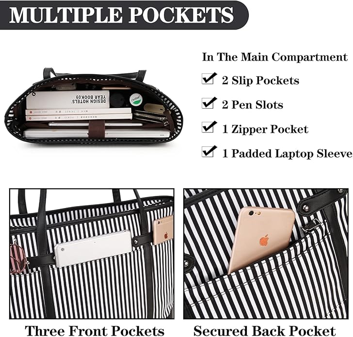 - ♦Water Resistant&Durable : Women tote bag is made of high quality and water resistant material and PU leather, which is long-term use and can well protect your laptop and files.It's a large women computer bags that perfect for work,college,business travel and so on.