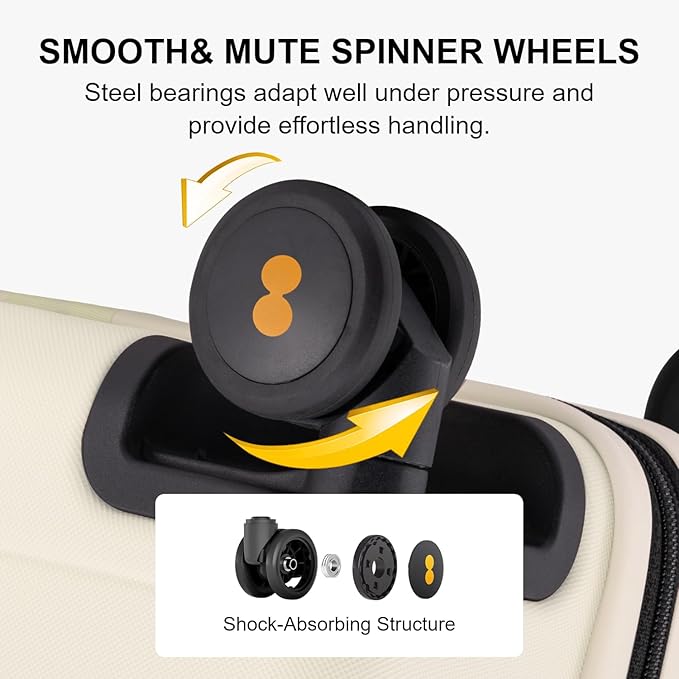 - More Effortless Traveling: This suitcase equipped with 8 silent universal spinner wheels and aluminum telescoping ergonomic handle with 4 levels for effortless control and maneuverability; Equipped with top and side easy grab handles; Bumper feet on side for protecting the case