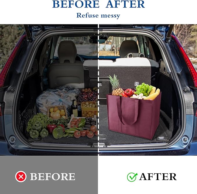 - Foldable and Portable : each grocery bag measures 16.1” x 13” x 10.2” (L x H x W); folds flat for easy storage in your kitchen, car, handbag, backpack, and luggage; great not only for veggies and fruit, but also great for food shopping, or clothes