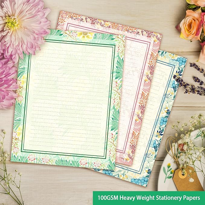- Anzon mories elegant medieval europe style: Original designer artwork vintage morris stationery paper set of 48 pieces lined writing letter papers in 6 classic antique floral designs assorted.