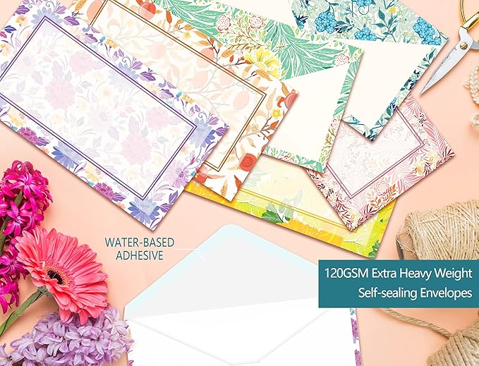- Glue-Free Envelope: Absolutely gorgeous Banker Style Envelop includes self-sealing glue on the edge of the lip. Save your time and perfect to mail your letter with this Envelope. Tip: add-up a Anzon Mories Inspirational Floral & Butterfly sticker or sealing wax to make your present even better!