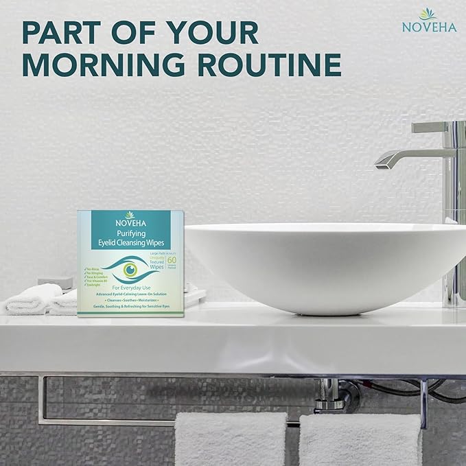 NOVEHA Eyelid & Lash Wipes | For Itchy, Dry Eyes, Styes & Blepharitis | lid and lash Cleansing Wipes, Hypoallergenic & Soothing For Sensitive Eyes, Pack of 60