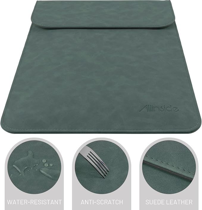 Allinside 13 inch Laptop Sleeve Case for with MacBook Air 13 2018–2025 (M2 A2681 M3 A3113 M4 A3240)/MacBook Pro 13 2016–2022 (A2251 A2289 A2338 M1 M2), PU Suede Leather Laptop Case Cover, Dark Green