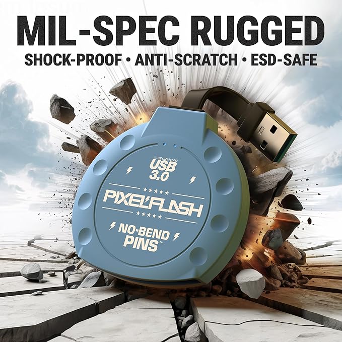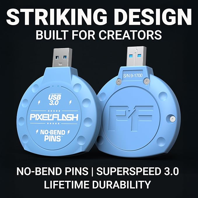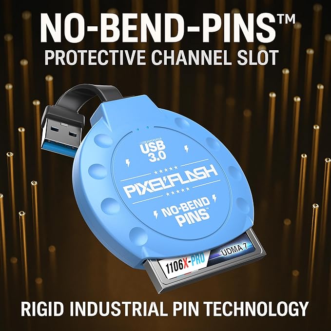 PixelFlash CF Card Reader (Blue) - Compact Flash Memory Card Adapter with Cabled USB 3.0, 5GB/s File Transfer, No-Bend Pins, Supports UDMA-7, Anti-Slip & Anti-Scratch, Compatible to Most Brands & OS