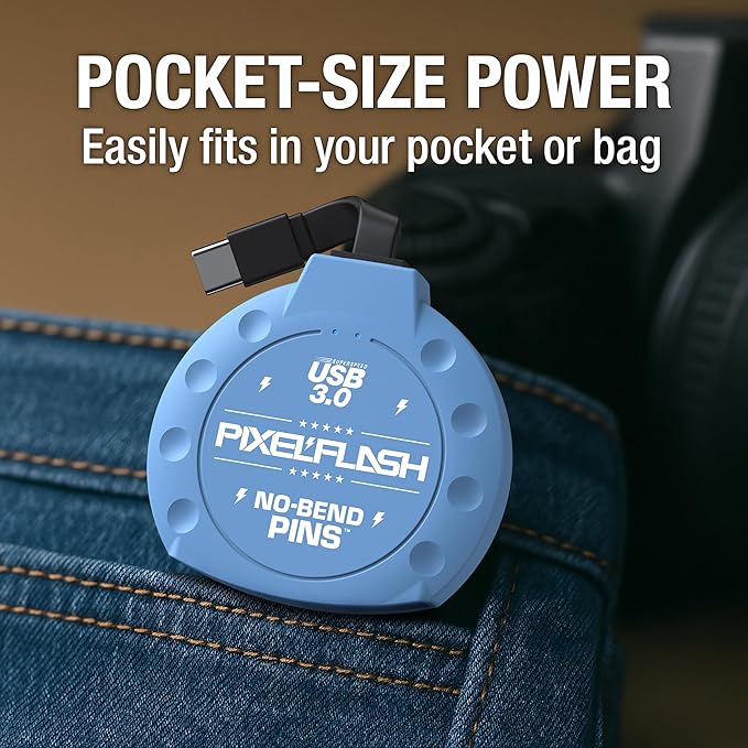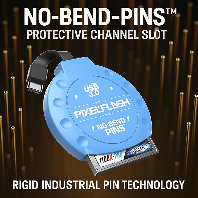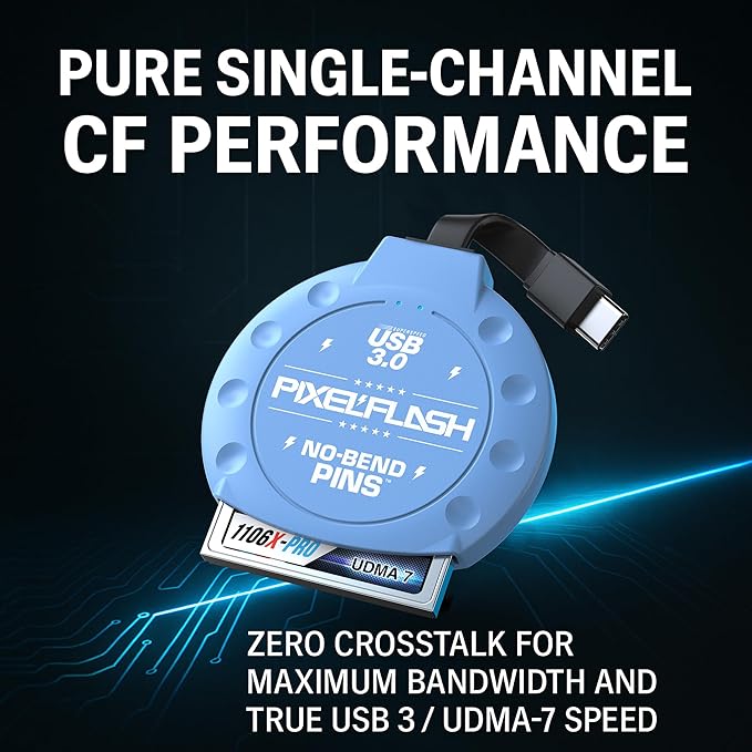 PixelFlash CF Card Reader USB C (Blue) - Compact Flash Memory Card Reader with Cabled Type-C USB 3.1, 5GB/s File Transfer, No-Bend Pins Technology, Supports UDMA-7, Anti-Slip & Anti-Scratch Exterior