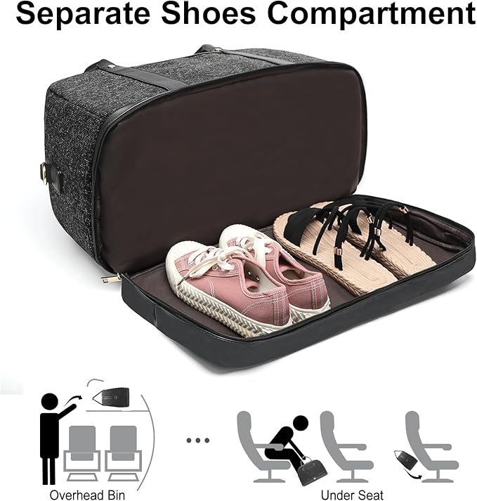 - 【Separate Shoes Compartment】This travel bag for women has a shoe pouch which can stores your shoes or dirty clothes, keeps your shoes or dirty clothes separate from the main compartment. Keeps you organized and takes the hassle out of packing!