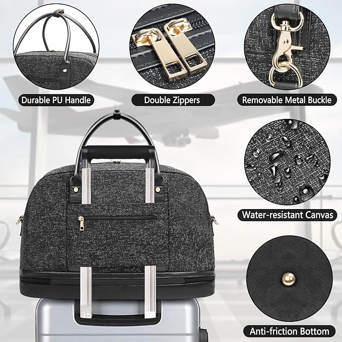 Weekender Bag for Women Canvas Overnight Bag Large Travel Tote Bag Carry on Shoulder Duffle Bag With Shoe Compartment,Perfect for Travel/Daily Use/Birthday Gift …