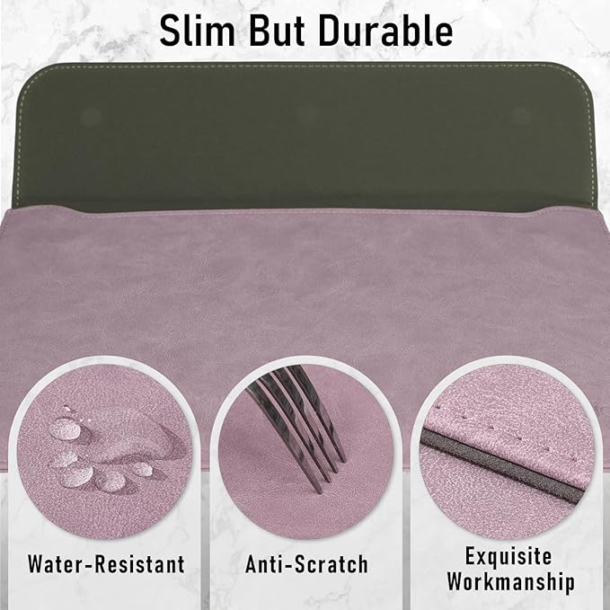 - Suede and Soft Velvet Lining: The suede surface makes the cover more textured, non-slip, waterproof and dustproof. The soft velvet lining protects your laptop from scratches and bumps