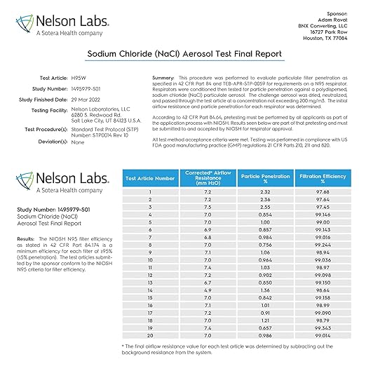 - Superior Protection & Breathability - BNX’s 5-layer filtration technology provides maximum protection, comfort and breathability. The active filter layer of these N95 masks is composed of ultra-high grade electrostatically charged meltblown polypropylene. Extremely breathable up to 50%+ more breathable than minimum requirement.