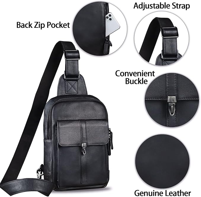 IVTG Genuine Leather Sling Bag Casual Shoulder Hiking Backpack Vintage Handmade Crossbody Bag Retro Chest Daypack (Darkgrey)
