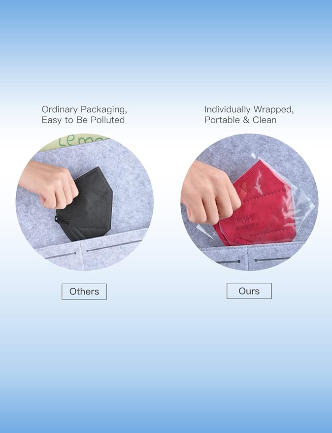 - Upgraded Packaging: This package includes 60 individually wrapped KN95 face masks, which can avoid the pollution caused by touch when taking the mask. Can be perfectly placed in your backpack, purse and pocket. Convenient to carry and use.