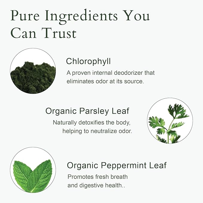 - Natural Ingredients, Powerful Results: Packed with parsley for cleansing, organic peppermint for freshness, and sodium copper chlorophyllin for deep detoxifiying, It Just Works offers a gentle yet effective way to naturally combat body odors.