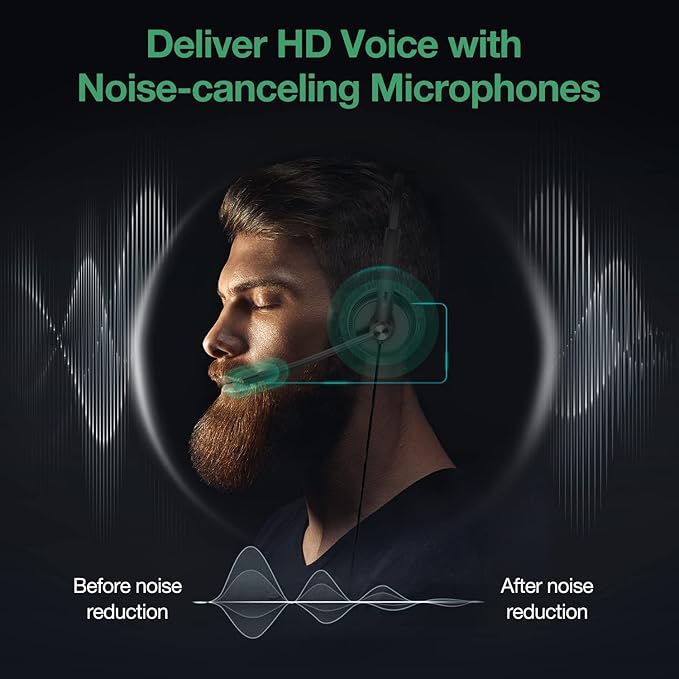 - All Day Comfort | Designed with replaceable foamy ear cushions, the business headset can softly cover the ear and support long conference calls, the extremely lightweight design enables the phone headset all-day wearing comfortable without pressure.