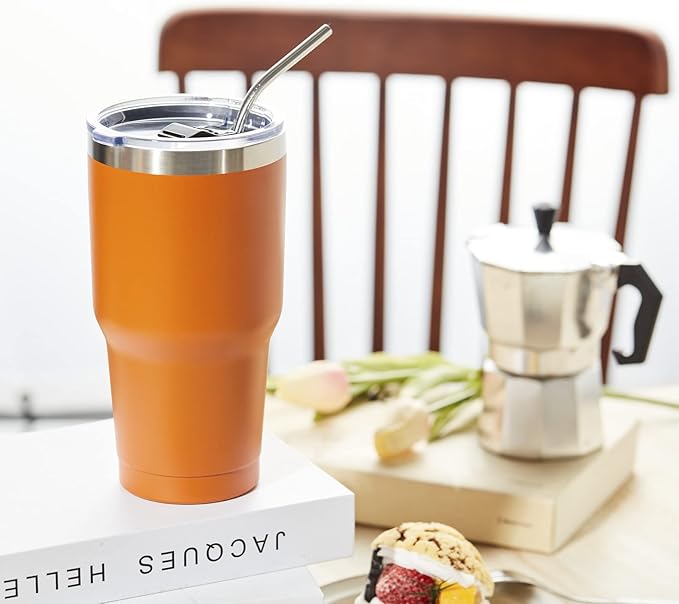 - [Well Design]The body of the 30 oz tumbler could fit most cup holders.The colored powder-coated exterior makes the coffee travel mug resistant to rust, sweat-proof, and stylish. It is comfortable for you to grip the tumbler with the humanlized design