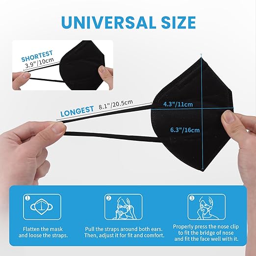 - KN95 Face Mask 50 PCS, Breathable Protection Masks, Against PM2.5, Filter Efficiency≥95%, 5-Ply KN95 Black Masks, Cup Dust Safety Masks