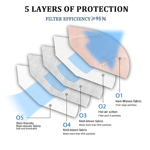 akgk KN95 Face Mask 50 PCS, Breathable Protection Masks, 5-Ply KN95 Pink Masks, Cup Dust Safety Masks