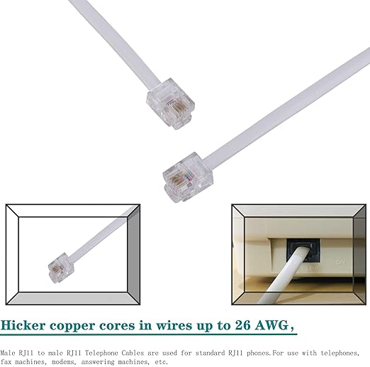 - 【Ensure Great Connection】The cores of wires are made of pure-copper, 100% 26WAG, much better than ordinary Copper-Clad-Steel telephone cord; contacts of plugs are coated with thicker gold plate. Both ensure great connection and calls.