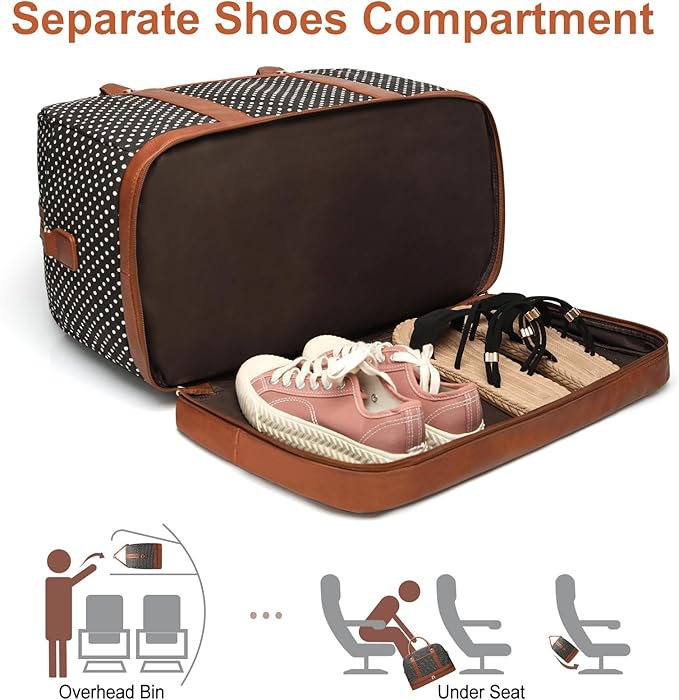 - 【Separate Shoes Compartment】This travel bag for women has a shoe pouch which can stores your shoes or dirty clothes, keeps your shoes or dirty clothes separate from the main compartment. Keeps you organized and takes the hassle out of packing!