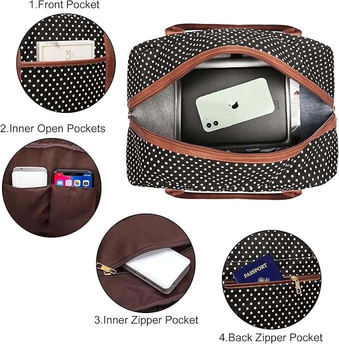 - 【Large Capacity】With a total of 6 pockets and 1 compartments , can fit in 2-4 days of daily essentials.Such as clothes, shoes, toiletries and electronic devices,ect.In the front of the overnight bag, there is a pocket for easy access electronics or travel materials.