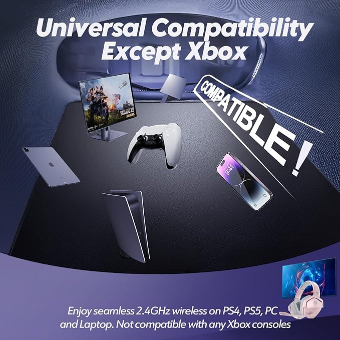 - Effortless Wireless Gameplay - Transition from tangled cables to smooth wireless gaming. Leveraging a 2.4GHz connection through its USB dongle, this headset ensures consistent gameplay for PCs and many consoles. Note: Some consoles may not support this wireless feature.
