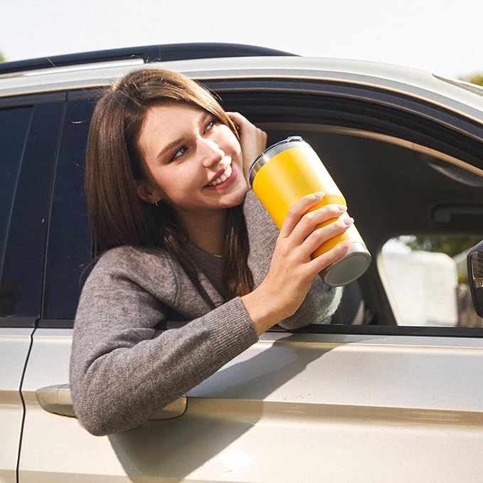 MEWAY 30oz Insulated Tumbler With Lids and Straws,Stainless Steel Double Vacuum Coffee Tumbler Cup, Brush, Durable Powder Coated Coffee Cup for Cold & Hot Drinks, Office, Travel(Yellow,4 PACK)