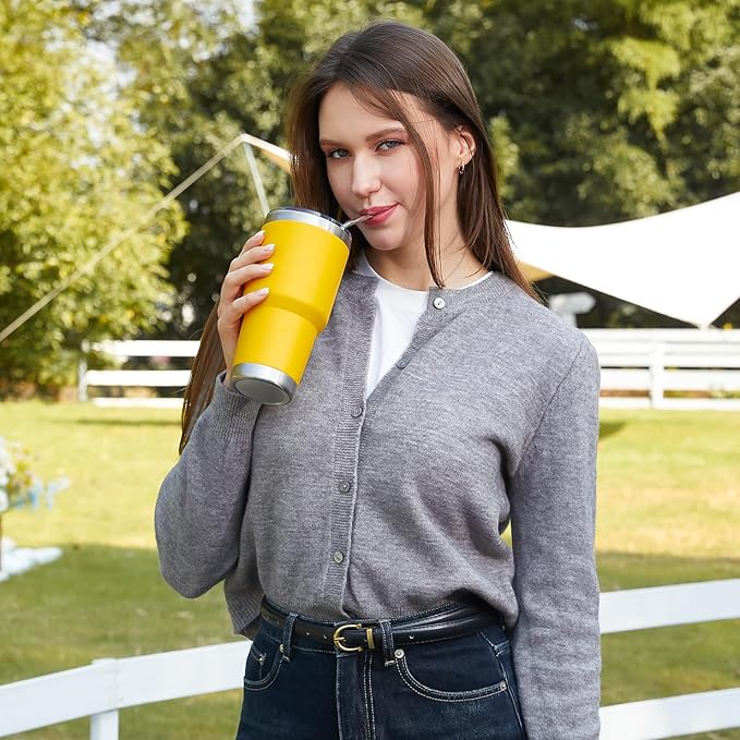 MEWAY 30oz Tumbler Double Wall Vacuum Insulated Travel Mug, Stainless Steel Tumbler with Lid, Durable Powder Coated Insulated Coffee Cup for Cold & Hot Drinks (Yellow,1 PACK)