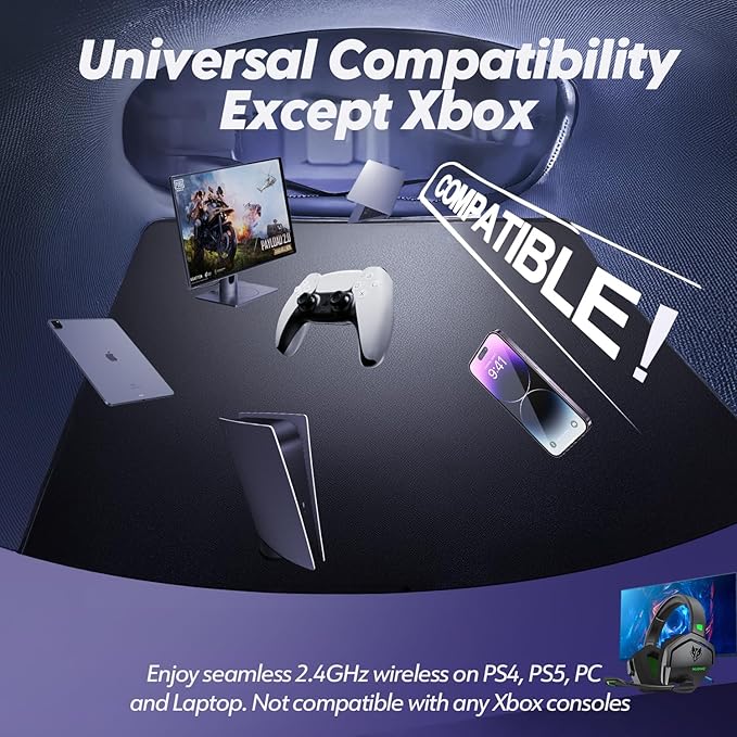- Effortless Wireless Gameplay - Transition from tangled cables to smooth wireless gaming. Leveraging a 2.4GHz connection through its USB dongle, this headset ensures consistent gameplay for PCs and many consoles. Note: Some consoles may not support this wireless feature.