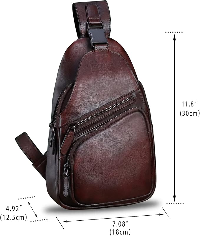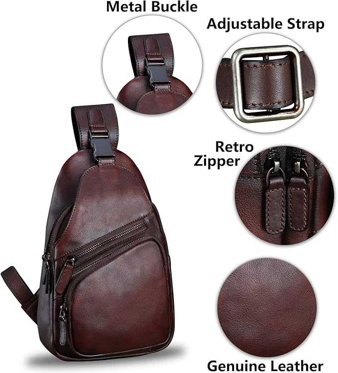 Genuine Leather Sling Bag Crossbody Purse Handmade Hiking Daypack Motorcycle Bag Retro Shoulder Backpack Vintage Chest Bag (Coffee)