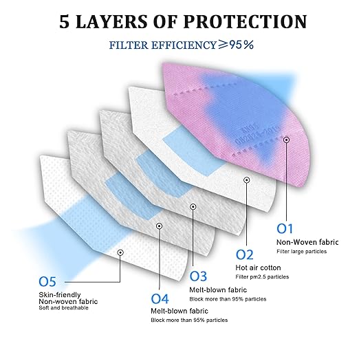 akgk KN95 Face Mask 50 PCS, Breathable Protection Masks, 5-Ply KN95 Hot Pink Masks, Cup Dust Safety Masks