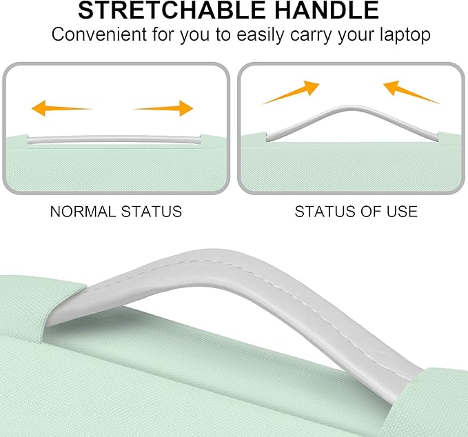 - EASY TO CARRY: Grab-handle on top which is stretchable– allow you to switch between a laptop briefcase handbag and laptop sleeve bag, make the macbook pro sleeve very PORTABLE for your daily laptop carrying and use. This macbook air sleeve with handle is SLIM & LIGHTWEIGHT can be easily slide into a briefcase, backpack bag, providing you with easy portability and convenient use! Perfect for your needs when you are going to a class, meeting, or business trip. Let your journey free and enjoyable!