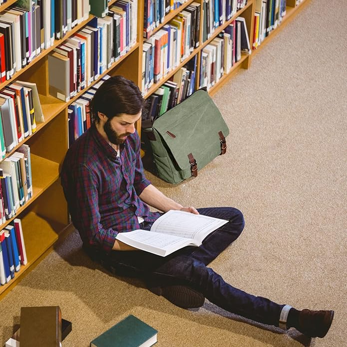 - This messenger bag is made of thick durable canvas, PU leather for long-term use.which it is heavy duty.It can protect your laptop and books entirely.