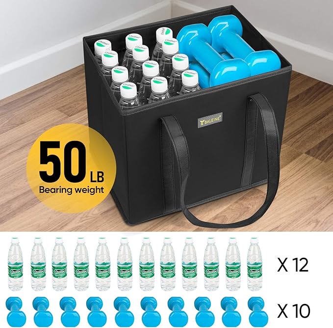BALEINE 3Pk Reusable Grocery Bags, Foldable Shopping Bags for Groceries with Reinforced Bottom & Handles (Black)