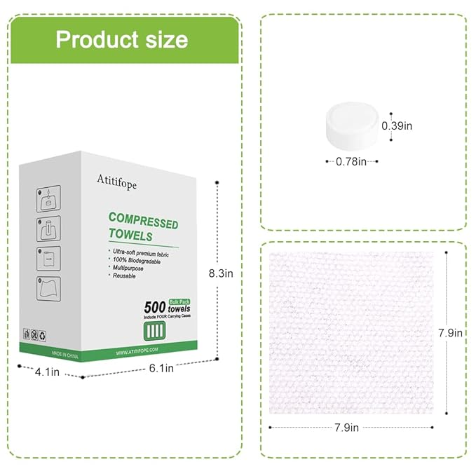 - Packing list:In box total have 500pcs towels,4 carring cases and one storage bag.