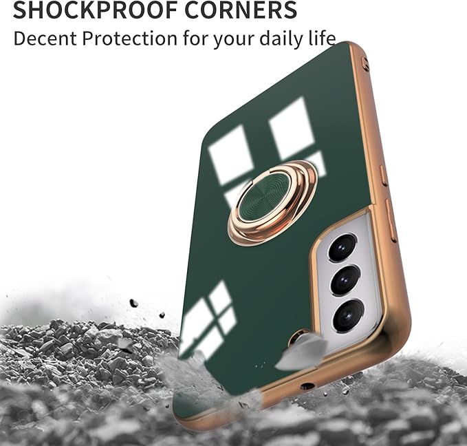 Tnarru Compatible for Samsung Galaxy S22 Case with Ring Holder Kickstand [with Magnetic] Soft TPU Shockproof Electroplated Protective Phone Case for Galaxy S22 5G Green