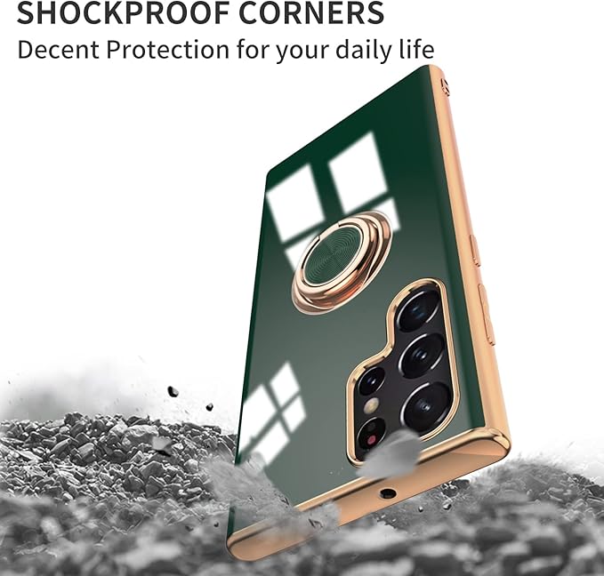 Tnarru Compatible for Samsung Galaxy S22 Ultra Case with Ring Holder Kickstand [with Magnetic] Soft TPU Shockproof Electroplated Protective Phone Case for Galaxy S22 Ultra 5G Green