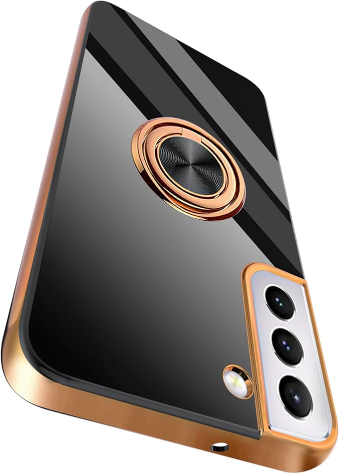 Tnarru Compatible for Samsung Galaxy S22 Case with Ring Holder Kickstand [with Magnetic] Soft TPU Shockproof Electroplated Protective Phone Case for Galaxy S22 5G Black