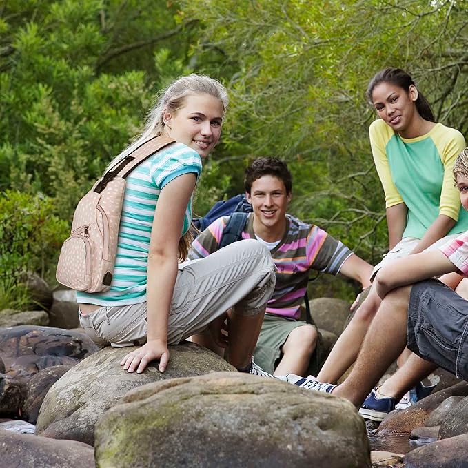 Anti-Theft Daypack Crossbody Sling Backpack, USB Charging Connector Port, Lightweight Day Pack for Travel, Hiking, Everyday, Regular, Vintage Fawn