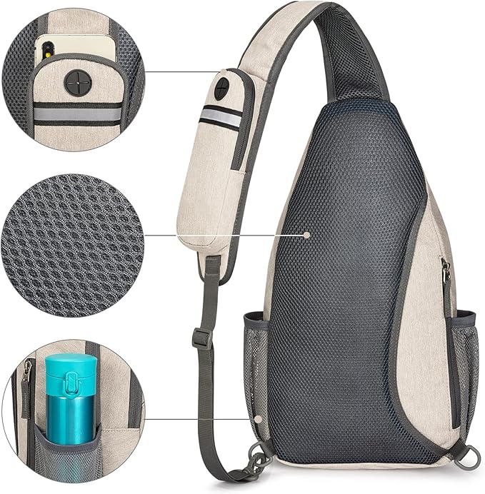 G4Free Sling Bag RFID Blocking Sling Backpack Crossbody Chest Bag Daypack for Hiking Travel(Ivory)