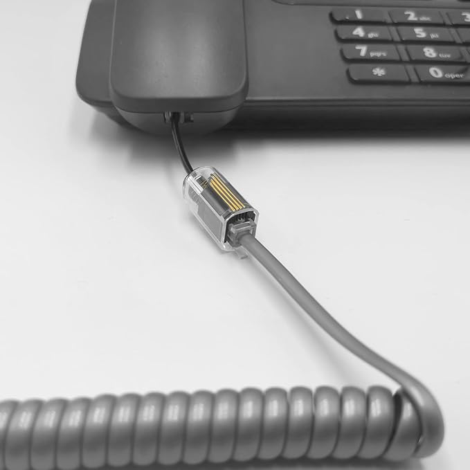 - ★ 2pcs telephone cord detangler black, prevents your handset cord from tangling, Input end is an RJ9 4P4C male plug (Connects to base phone), output is a female jack (Connects with handset cord)