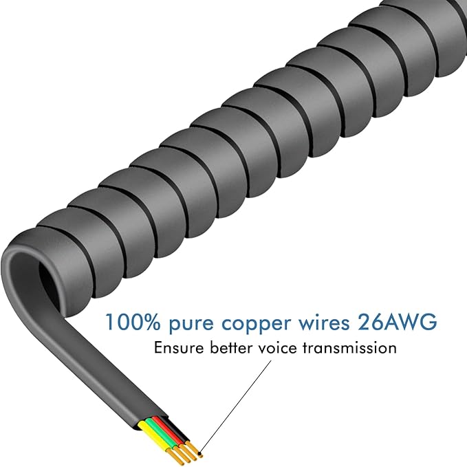 - ★ Heavy duty, tangle free, made of 100% copper telephone wires, 4 conductors, 26AWG wire gauge