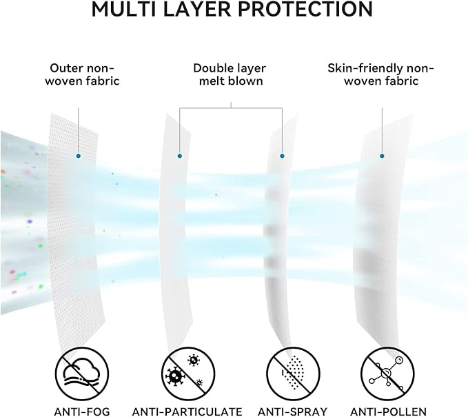 - Thinner and Lighter: The masks are made of 4 layers but the protective effect is the same as the 5 layer mask, thinner and in lightweight, more breathable.