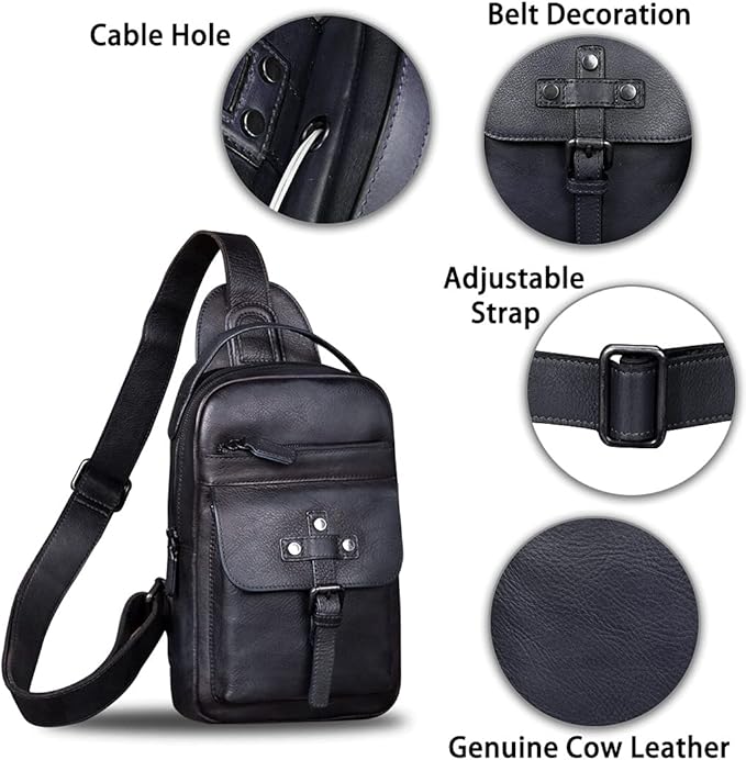 IVTG Genuine Leather Sling Bag Chest Shoulder Fanny Bag Hiking Backpack Vintage Handmade Crossbody Daypack