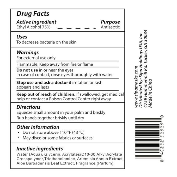 SIPA Hand Sanitizer 1.69 oz/ 50 ml, Travel Size, Jasmine Scent, Flip Cap Bottle each, Refreshing Soothing Gel with Aloe, and Vitamin E, (Pack of 16)