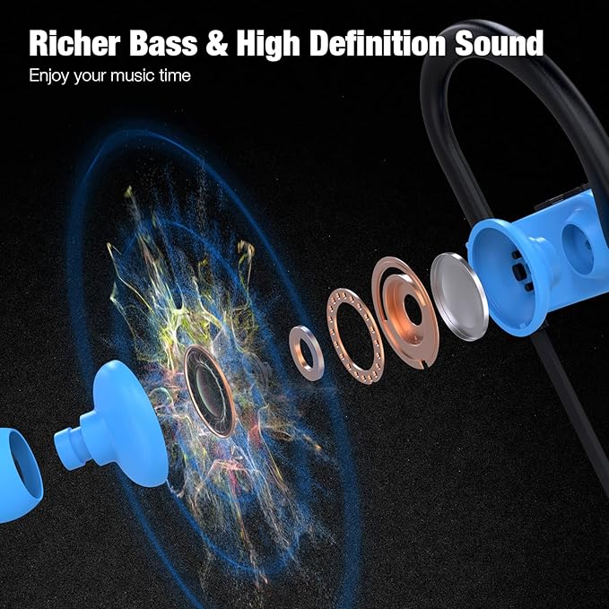 - [IPX7 Waterproof] Wireless headphones boast IPX7-rated protection that prevents ordinary splashing water and rain. (Please note: not for swimming)