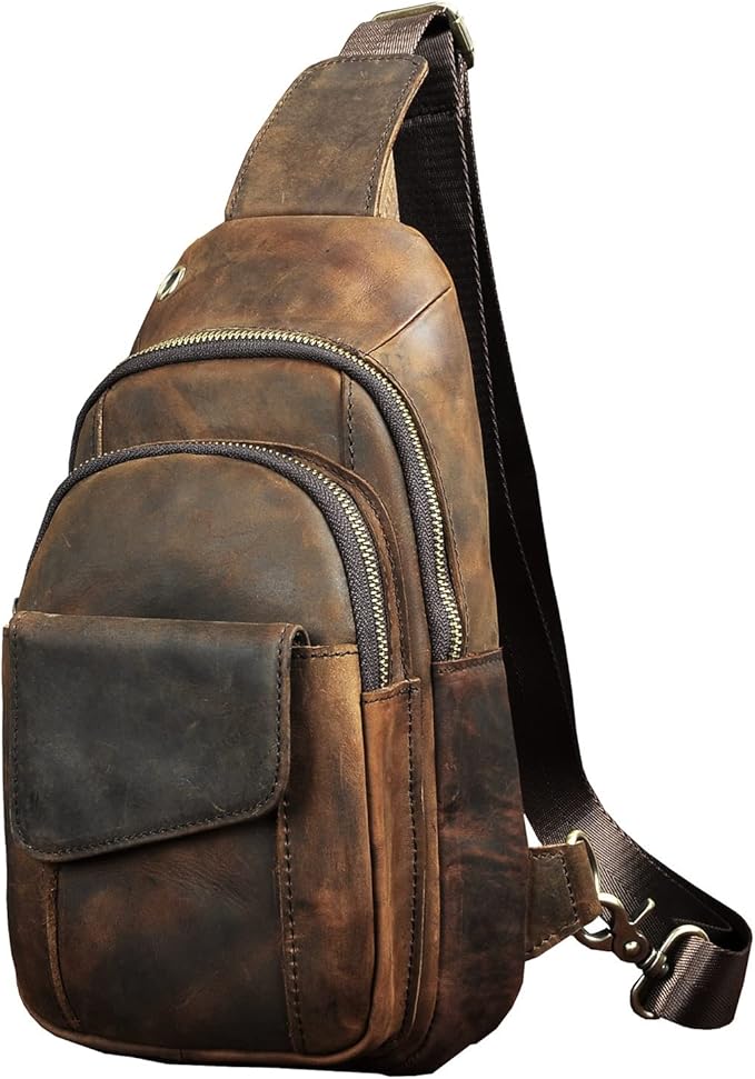Le'aokuu Men Outdoor Casual Travel Hiking Tea Crossbody Chest Sling Bag Rig One Shoulder Strap Bag Backpack Men Leather