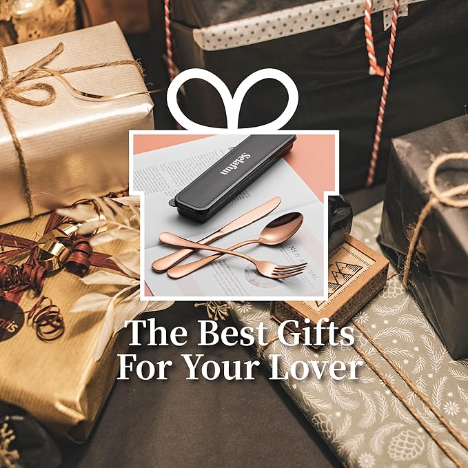 4-pieces Travel Set with Case Portable Silverware Utensils Set for work, Stainless Steel Reusable Flatware Set Cutlery Set for Camping Picnic Hiking Office (8inch, Rose Gold)