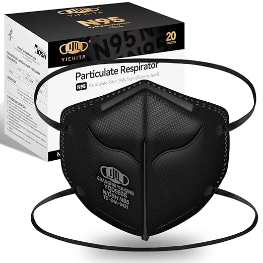 N95 Mask NIOSH Approved 20-Pack, Particulate Respirator N95 Face Masks Universal Fit - Individually Wrapped, Black