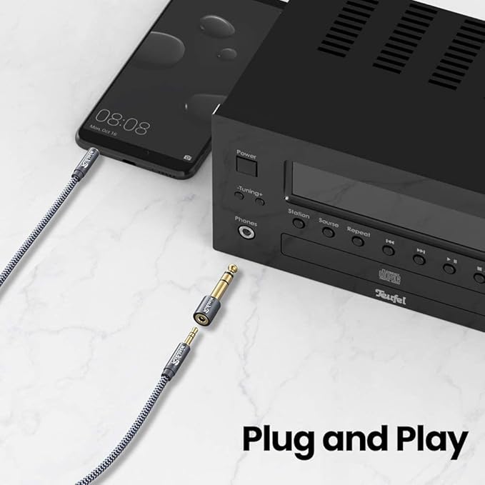 - 【Best Quality Material】 This 6.35mm (1/4 Inch) to 3.5mm (1/8 Inch) audio jack converter made of solid brass, with a much longer service life compared with those plastic connectors with metal paint. 24K Gold-plated connectors resist corrosion and ensure reliable performance and minimal signal loss.